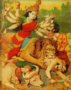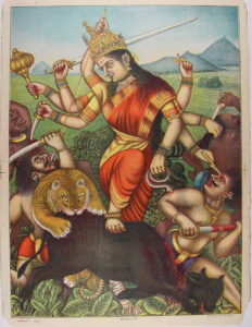 Ontario Museum. (c. 1890) Chitrashala Press, Pune. Available at: https://collections.rom.on.ca/objects/519555/print-of- ashtabhuja-devi-durga-slaying-the-demon-mahisha- (Accessed: 27 September 2025).
