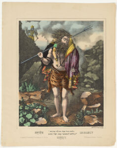 Shiva Mahadev, carrying Sati, hand-coloured lithograph. Collection of Mark Baron and Elise Boisante. Metropolitan Museum of