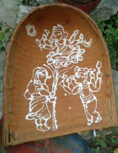 In the Kumaon region, Igaas, also known as Budhi Diwali, has its own distinctive traditions. Symbolizing the victory of good over evil, the winnower called supa is first smeared with geru mitti (red ochre clay), and then decorated with images of Goddess Lakshmi and Lord Narayan using a paste made of ground rice (Biswar). On the back of the supa, a demon named Bhuiya is painted. The next morning, elders carry the supa around the house, chanting: “Lakshmi-Narayan ghar me padharo, bhaag Bhuiya bhaag bhaag” (“Lakshmi and Narayan, please enter our home; begone, Bhuiya, begone”). Following this, they step outside and smash a walnut on the ground, symbolizing the destruction of the demon. People also believe Diwali has three phases, reflecting three life stages of Goddess Lakshmi: Choti Diwali, observed on Sharad Purnima about 21 days before the main Diwali, symbolizes her childhood. Diwali, widely celebrated across India, represents her youth and Budhi Diwali or Igaas marks her elder age. On Budhi Diwali, people hang sugarcane stalks at their doorways, believing that the goddess will use them as stairs to enter and bless their homes. (Source: Kafaltree.com)