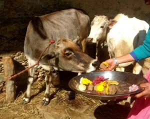 Villagers worshipping cattle. Image courtesy Kafaltree.com