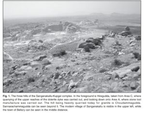 Sanganakallu, one of the largest Neolithic settlements in South India, dates back to 2000 BCE to 1000 BCE. The remains of the site are located near the west bank of the Hagary river close to the town of Bellary in Karnataka. The site is known for its ashmounds, which indicate cattle herding and ritualistic burning practices. Unlike Burzahom and Chechar, Sanganakallu exhibits extensive lithic production, with evidence of specialised axe-making workshops.