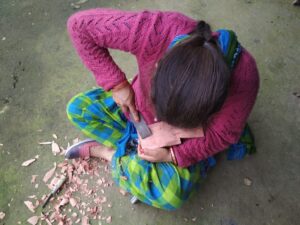 Besides doors and windows, we find various daily articles made of wood, such as mirrors, utensils, and a storage box called mor pithak, which was used to keep vermillion, sandalwood, and rice used for putting tikas on special occasions. This attempt by the locals has bridged the gap between the past (Likhai as a showcase element) and present (the art being integrated with the lives of the people). With the attempt of this craft studio, wood carving and articles made from this method are not only a show-case but are again becoming the lived experience of both who are making these articles and those who are using them.