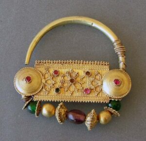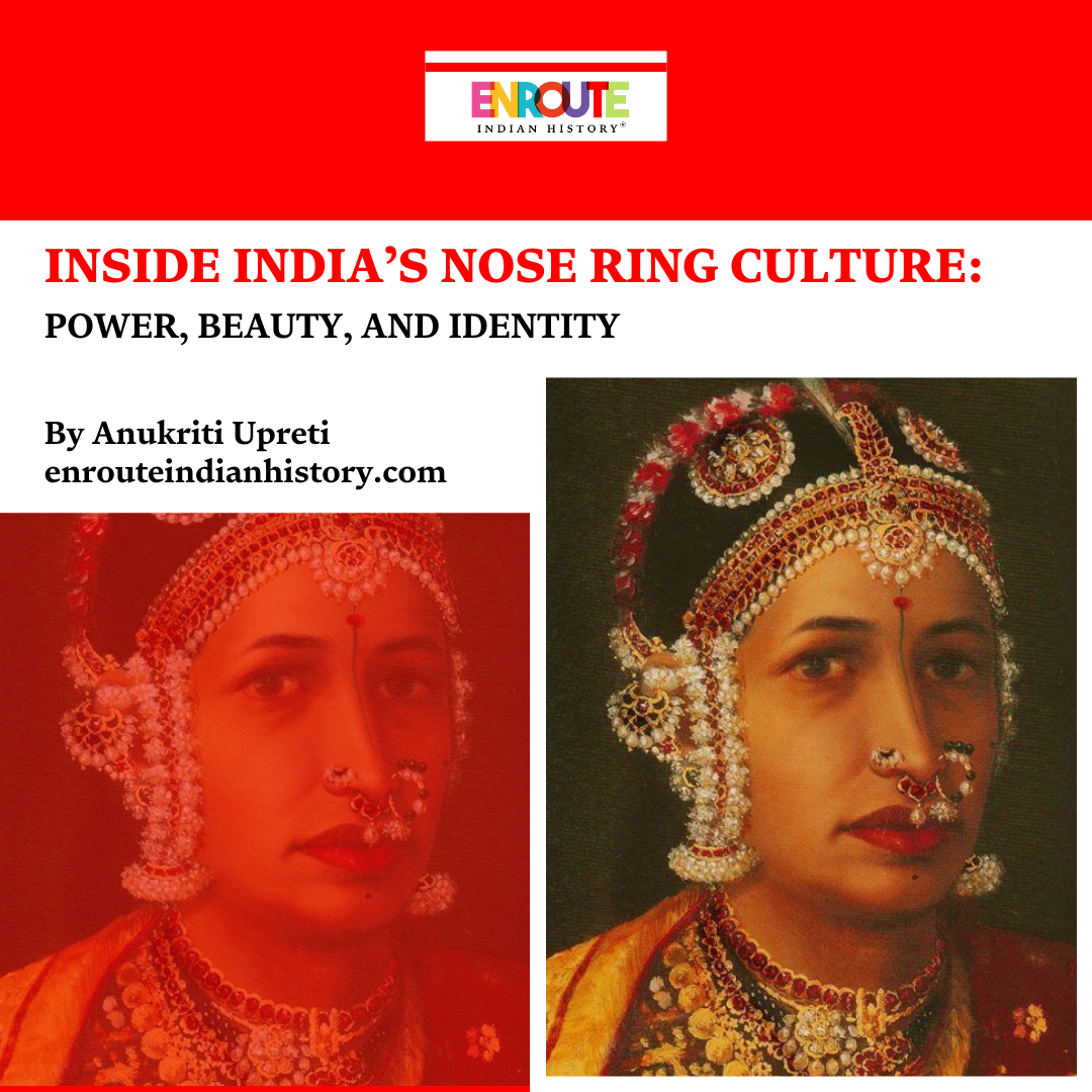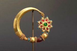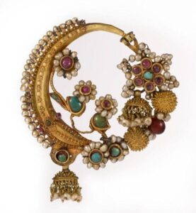 Jewels and ornaments are the representation of their society. Their designs, craftsmanship and the gems and stones used in producing them tells a lot about the social status, cultural interactions and trade and exchanges between people. Here, we have tried to look at one such ornament, Nose Ring popularly called as Nath in India. There are different types of Nath found in different parts of the country. The earliest evidence of nose piercing comes from the Middle East and dates back roughly 4,000 to 5,000 years ago. Some scholars like P.K. Gode traces it back to the 1000 AD and suggests that it was a result of cultural interactions between the Hindus and the Muhammedans . We have the Biblical Old Testament mentioning a word called Shanf in Hebrew which may translate to “nose ring.”