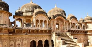 Founded in 1791 by the Poddar family, these cenotaphs feature ala-gila frescoes on inverted lotus pinnacles, accessed via a monumental staircase. Octagonal pillars reflect the town’s legacy as a hub of Shekhawati art and wealth.