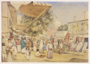 Carpenter, William. View of the Bazaar at the Back of the Jami Masjid, Delhi. 1856, Delhi. Painting.