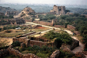 Tughlaqabad, the third fortified city of Delhi, was built on the Aravalli hills by Sultan Ghiyas-ud-din Tughlaq between 1321 and 1325 C.E.. The fort’s design featured massive, sloping walls and bastions, characteristic of Tughlaq architecture. It was intended to serve as a defensive stronghold against Mongol invasions and as the dynasty’s administrative center. Despite its strategic construction and scale, the fort was abandoned shortly after its completion and remained largely unpopulated. This rapid desertion raises a crucial question: why did such a significant imperial project fail? (Singh 2024)