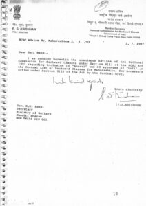 National Commission for Backward Classes (n.d.) First page of National Commission for Backward Classes Recommendation. Available at: http://ncbc.nic.in/Writereaddata/addmh2.pdf (Accessed: 16 June 2025).