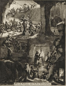 Diamond mine in the Golconda region 1725 CE from the collection of Pieter van der Aa—a Dutch publisher known for preparing maps and atlases. (Source: Wikimedia Commons)
