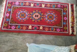 The geometrical patterns are especially found in the Danns, along with images of mythical birds such as Jira and dak of Tibet and the Chinese dragon called Jug in Tibet. Today, we find large floral motifs at the center, surrounded by designs and geometrical patterns drawn symmetrically to make the carpet attractive. Earlier these Dann were exchanged with other food articles through fairs like Uttarayni in Bageshwar, now after the handicraft got GI tag in 2021, the Uttarakhand Handloom and Handicraft Development Council (UHHDC) is working for their online retail.