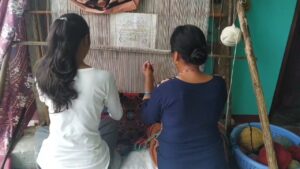 Garima, learning the art of Dann from her mother. Photo clicked during the field visit.